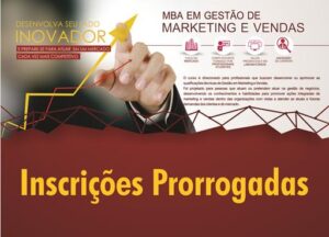 Informamos que as inscrições para o MBA em Gestão de Marketing e Vendas da Faculdade de Balsas foram prorrogadas até o dia 17 de Junho de 2015. As inscrições podem ser realizadas na Secretaria Acadêmica da IES até o dia