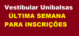 Na próxima segunda-feira, encerra-se o período de inscrições para o Vestibular Unibalsas 2012. Os candidatos podem efetuar sua inscrição na Secretaria Acadêmica da Faculdade;
